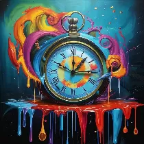Для генерации изображения не нужно составлять сложный промт, достаточно просто ввести то, что нужно создать, например: "Цветные волны", "Таящие часы", "Фрагментированное лицо"
