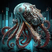 Погружает в мир футуристической симбиозы живой ткани и сложных механических структур, создавая завораживающие картины, где природа и технология сливаются в гармоничном и одновременно пугающем танце форм и текстур.