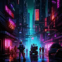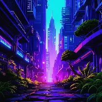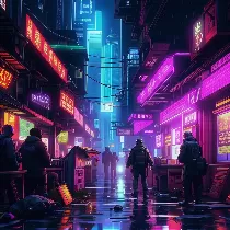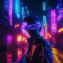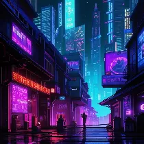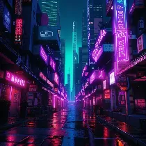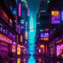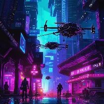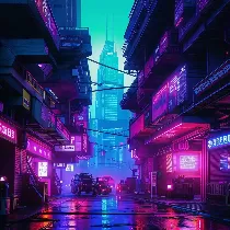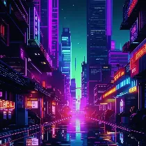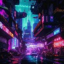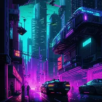 Создает завораживающие изображения в стиле киберпанка, воплощая мрачные, высокотехнологичные городские пейзажи. Он использует передовые алгоритмы искусственного интеллекта для прорисовки детализированных небоскребов, неоновых огней и футуристической архитектуры, передавая атмосферу ночного мегаполиса с элементами киберпанка.