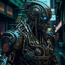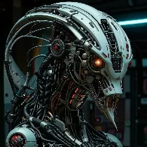 Создаёт потрясающие изображения в стиле биомеханического киберпанка, где каждый элемент сочетается с технологическими и органическими деталями, погружая вас в мир футуристической фантазии и высокотехнологичных приключений.