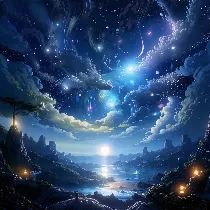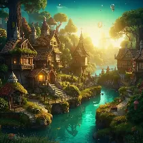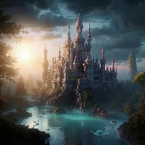 Создаёт волшебные пейзажи, пропитанные магией и очарованием сказочного мира, где каждый элемент картинки переносит вас в удивительную вселенную грёз и фантазий.