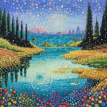 Создаёт удивительные работы в технике пуантилизма, где каждая точка и цветовые нюансы складываются в великолепные и детализированные образы, удивляющие тонкостью и гармонией.