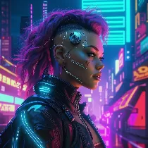 Создаёт великолепные ретро-киберпанк картины, излучающие атмосферу старинного футуризма с элементами научной фантазии. Каждый образ — это невероятное сочетание ностальгии по старым технологиям и захватывающий мир будущего, где неоновые цвета встречаются с винтажными деталями.