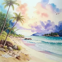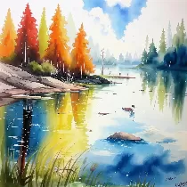 Создаёт живописные акварельные картины, где нежные переходы оттенков и лёгкость мазков передают атмосферу спокойствия и творчества, погружая вас в мир сказочных пейзажей и трогательных образов.