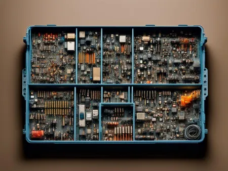 Промт для генерации изображений в нейросетях на тему: "Электронные компоненты"