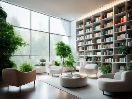 Промт для генерации изображений в нейросетях на тему: "Библиотека"