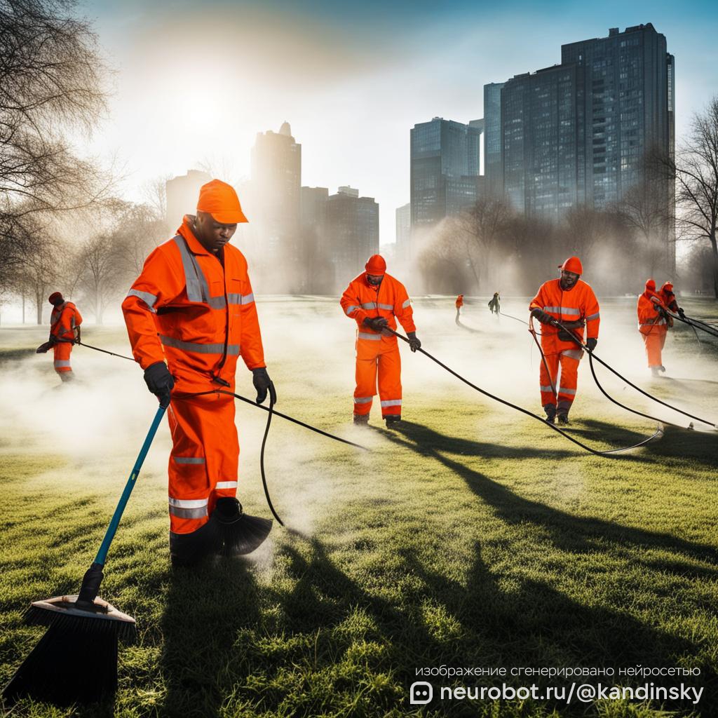 Промт для генерации изображений в нейросетях на тему: "Уборка территорий, очистка"