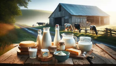 Промт для генерации изображений в нейросетях на тему: "Фермерские молочные продукты"