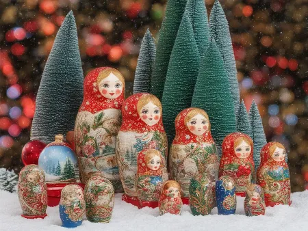 Промт для генерации изображений в нейросетях на тему: "Новогодние сувениры, подарки"