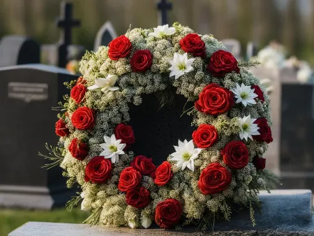 Промт для генерации изображений в нейросетях на тему: "Памятники, ритуальные пренадлежности"