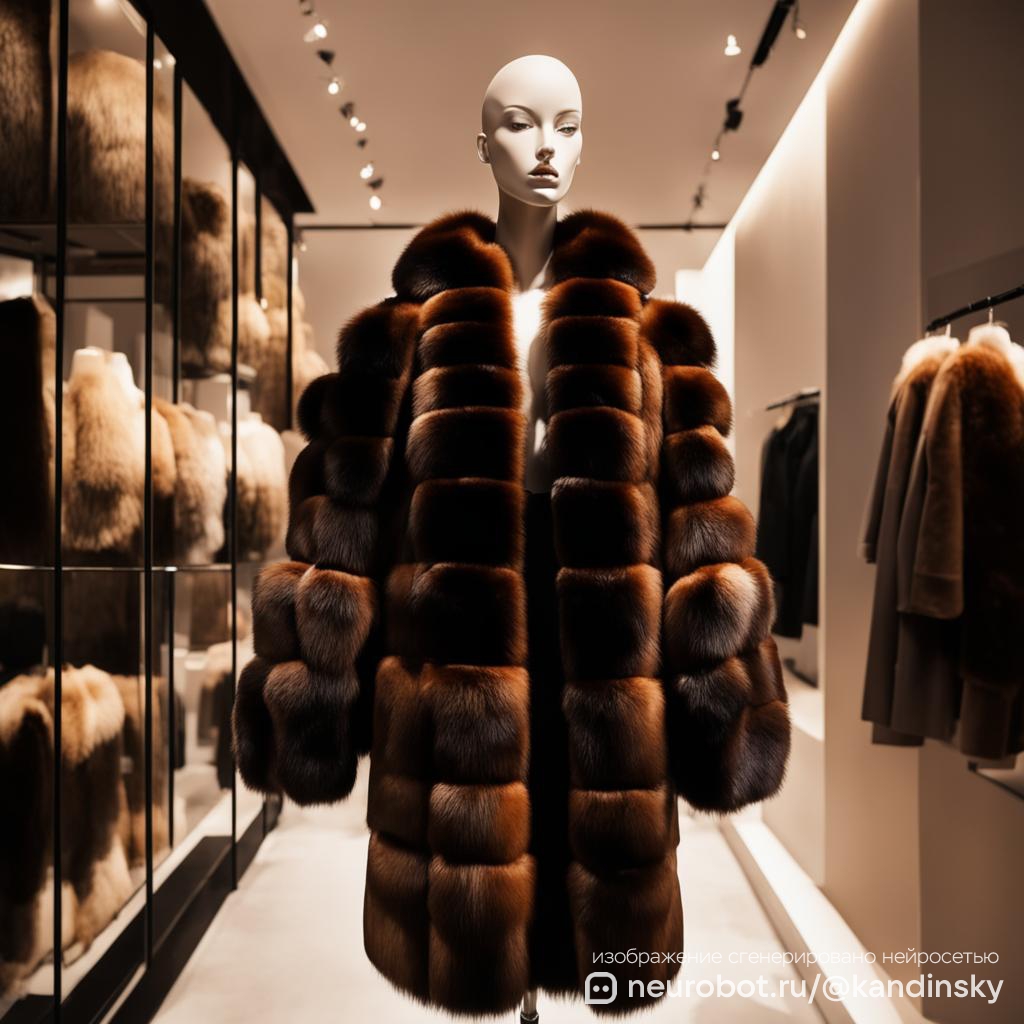 Роскошный меховой пальто на манекене в шикарной бутиковой обстановке