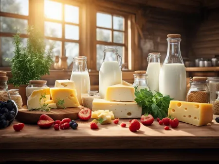 Промт для генерации изображений в нейросетях на тему: "Молочные продукты"
