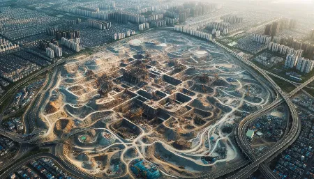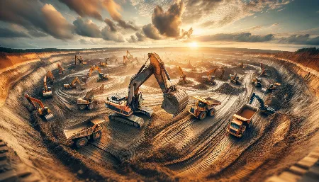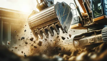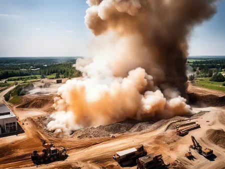 Промт для генерации изображений в нейросетях на тему: "Земляные работы, взрывные"