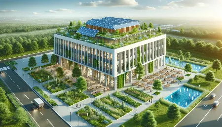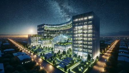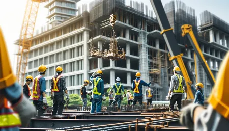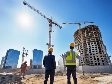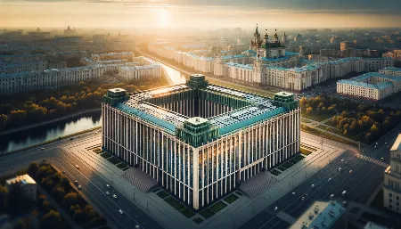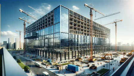 Промт для генерации изображений в нейросетях на тему: "Строительство административных зданий"