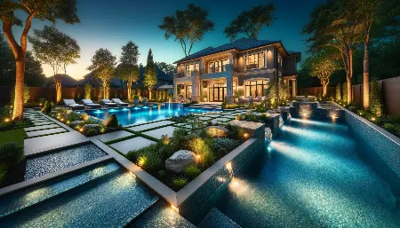 Промт для генерации изображений в нейросетях на тему: "Строительство, монтаж, оборудование бассейнов, фонтанов"
