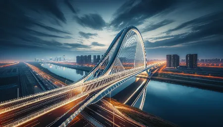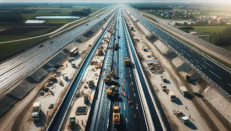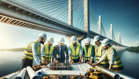 Промт для генерации изображений в нейросетях на тему: "Строительство, ремонт мостов, дорог"