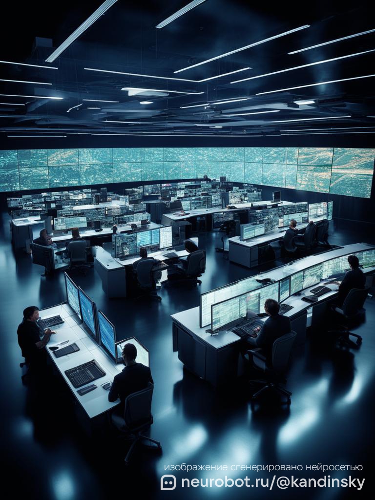 Вид сверху на большой и сложный центр управления сетевыми операциями (NOC)